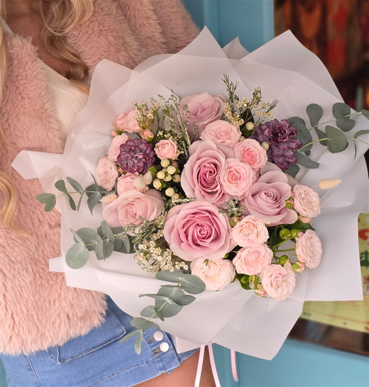 Perfect Mix of Blush Pink Roses and Spray Roses. These Roses look so Luxurious.